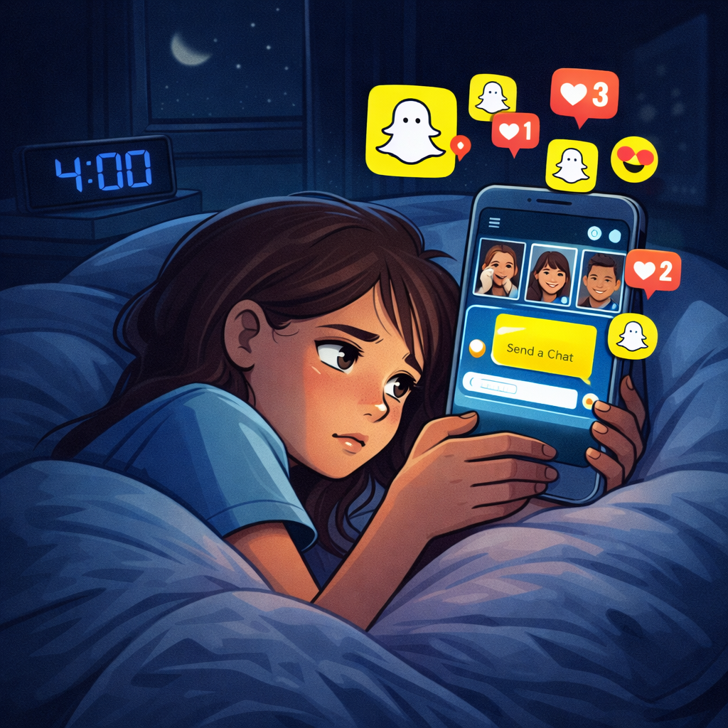 When she was around fourteen or fifteen, there was a period when she became persistently cranky and exhausted. I couldn’t quite place it. Nothing dramatic seemed wrong. Eventually, I checked her Screen Time data and the pattern was obvious: she was on Snapchat with three friends until four in the morning, every school night, ying in bed, phone in hand.