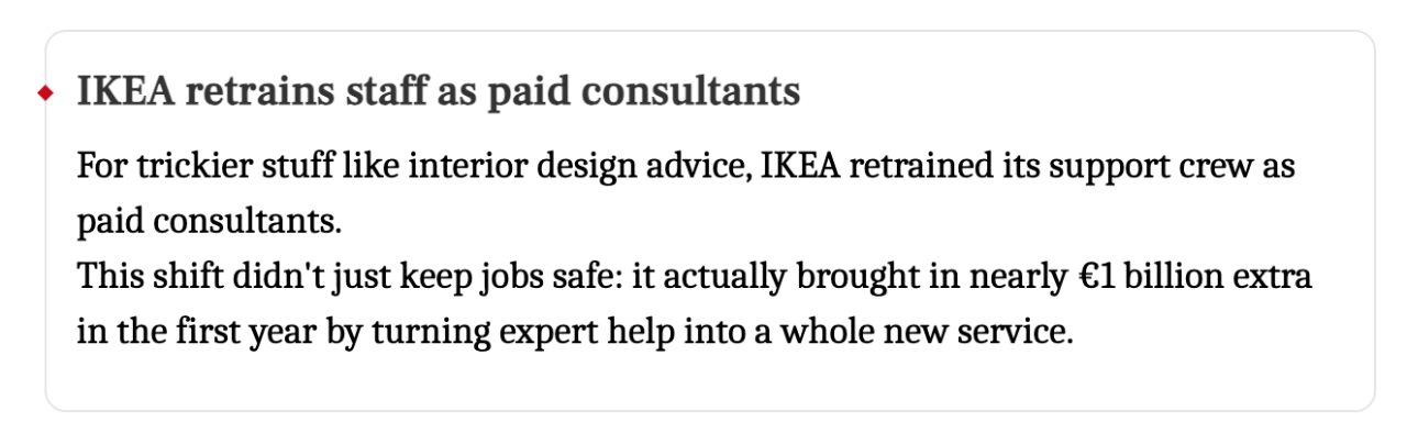 So they retrained those 8,500 people as design consultants.
