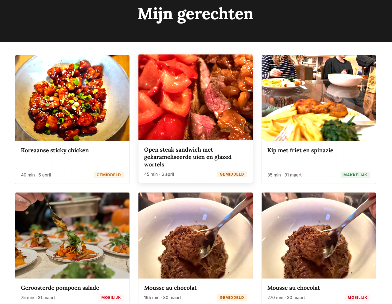 above: Screenshot from my food family platform.