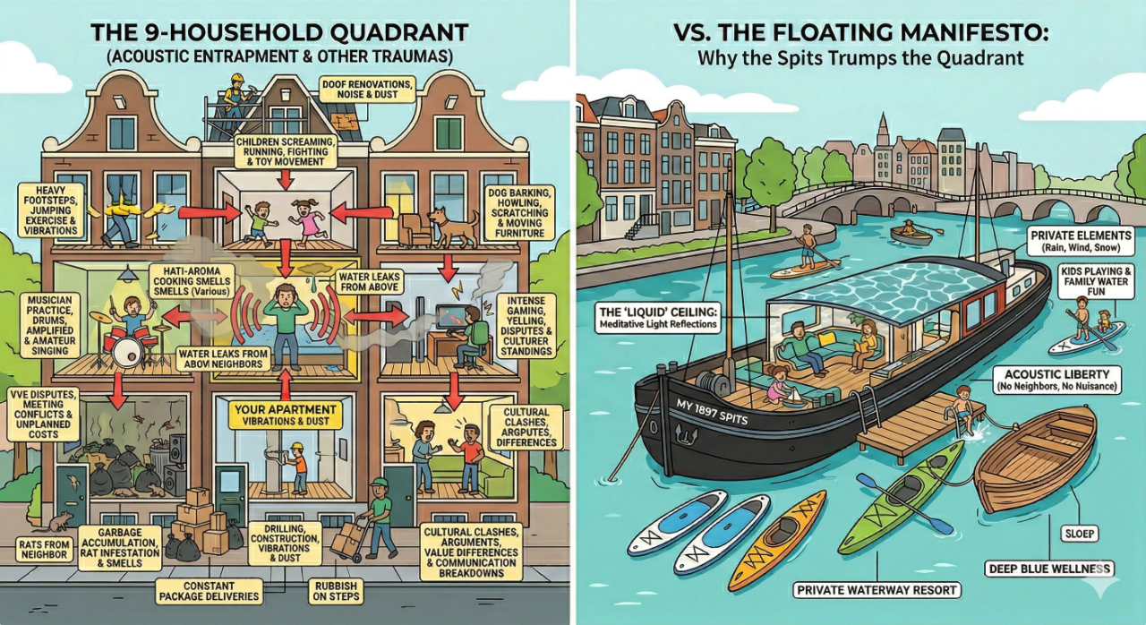 In Amsterdam, we are obsessed with “stacks.” We live in vertical boxes, separated by thin 19th-century floorboards and the constant, muffled soundtrack of other people’s lives. I call it the 9-Household Quadrant: that psychological trap where you have neighbors above, below, and on every side.